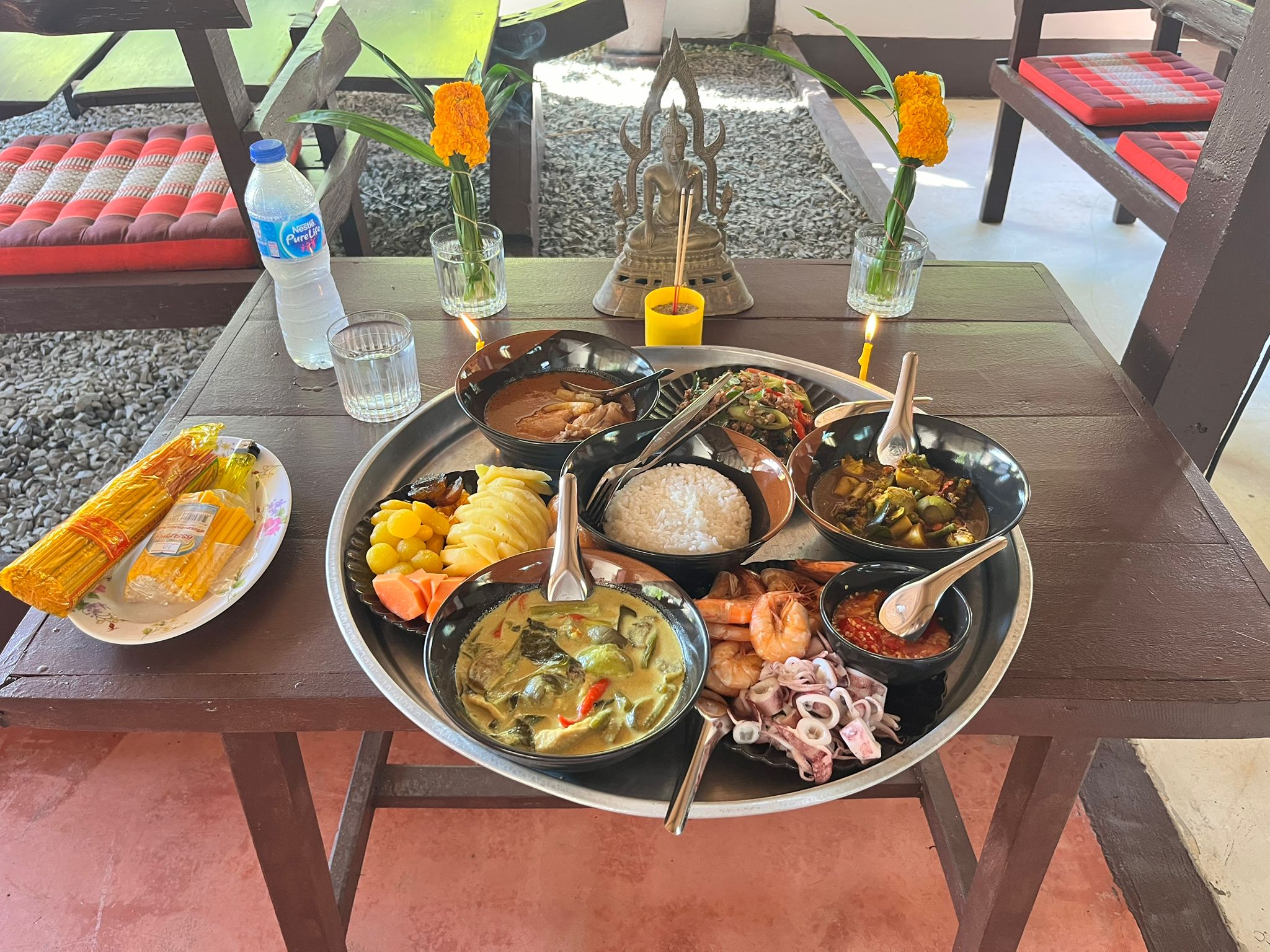 hambres à partir de 1000 bahts la nuit en chambre double. Lit King size, air conditionné, frigo, bouilloire… avec vue tropicale, à quelques pas de la plage de Kai Bae.